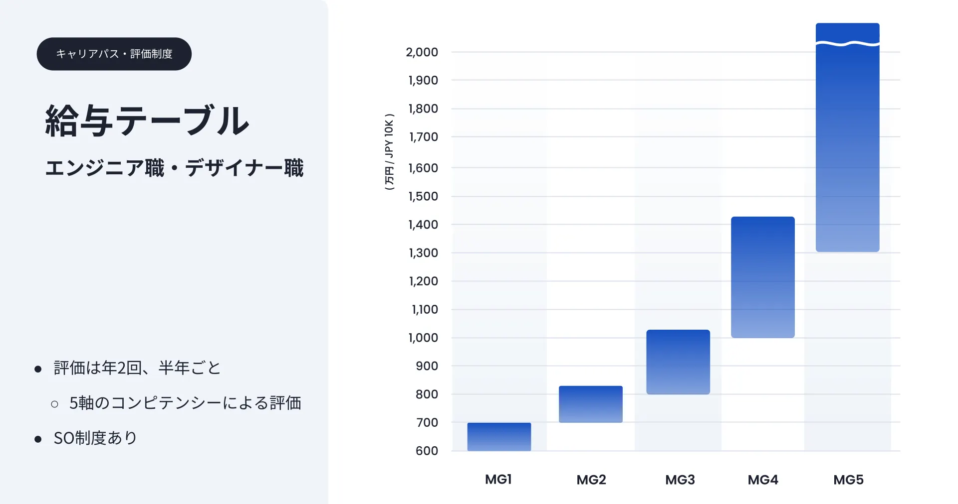 - 総合等級(Grade)が決まると、ベースとなる報酬が決まります。