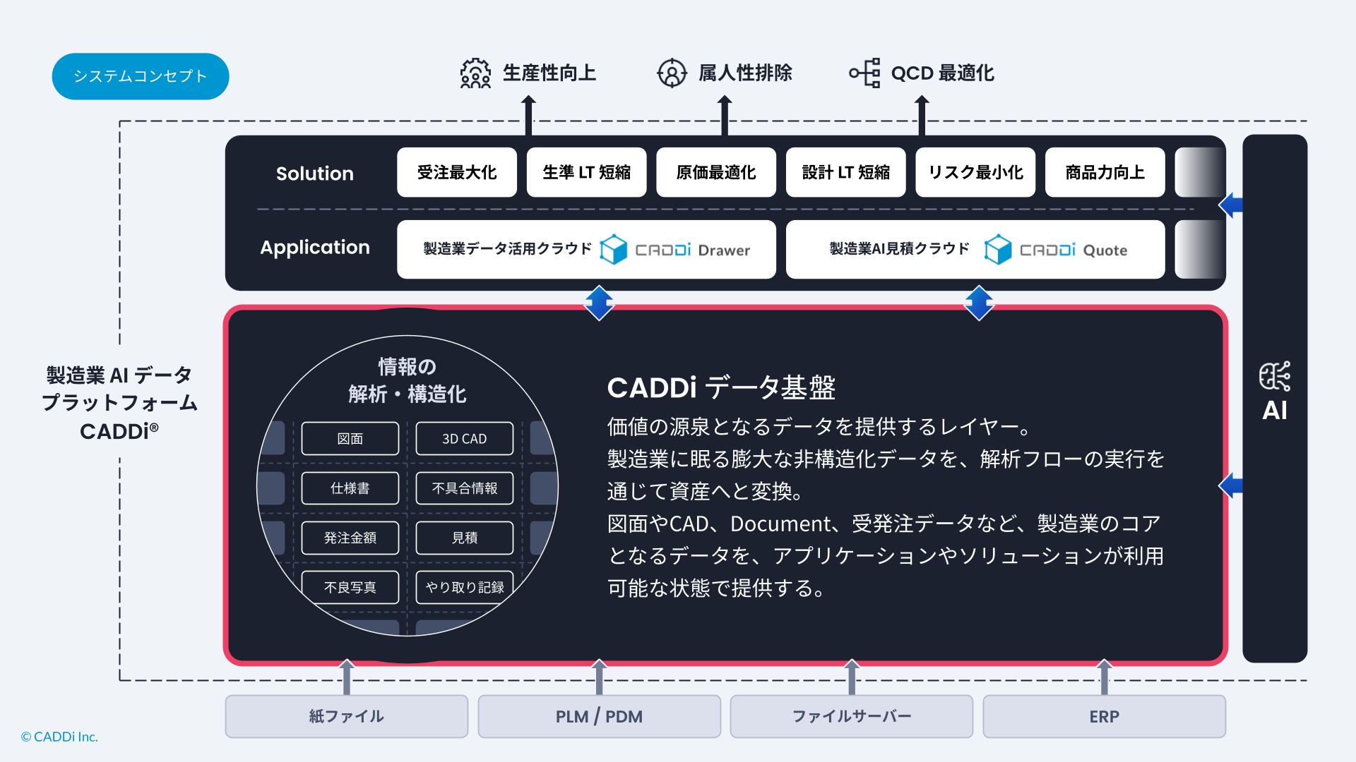 CADDi データ基盤は価値の源泉となるデータを提供するレイヤーです。